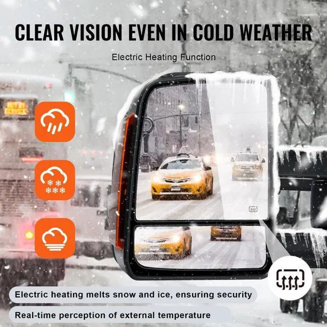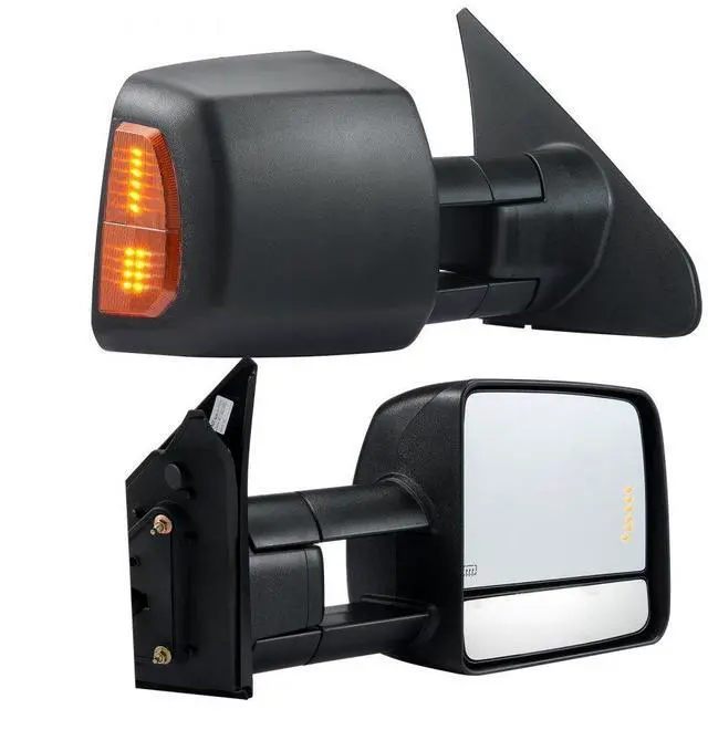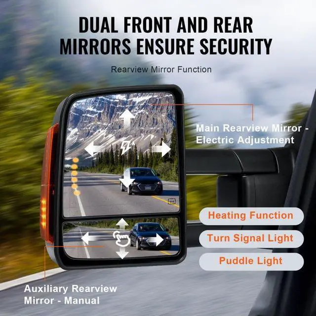 VEVOR Towing Mirrors Fit for 2007-2017 Toyota Tundra, Power Heated Tow Mirror with Signal Light/LED Arrow Signal Light, Plane & Convex Glass, Manual Controlling Telescoping Folding, Black