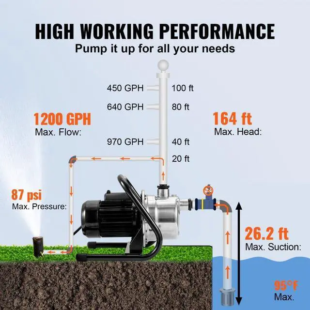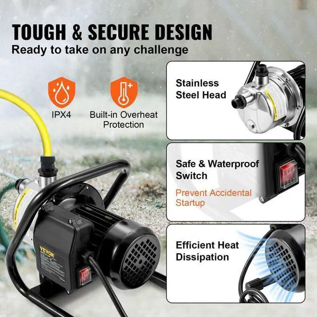 VEVOR Shallow Well Pump Portable Garden Water Jet Pump 1.5HP 1200GPH 164 ft Head