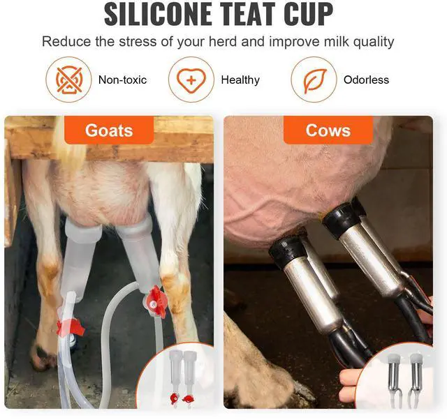VEVOR Goat Milking Machine, 12 L 304 Stainless Steel Bucket, Electric Automatic Pulsation Vacuum Milker, Portable Milker with Food-grade Silicone Cups and Tubes, Adjustable Suction for Cows and Sheep