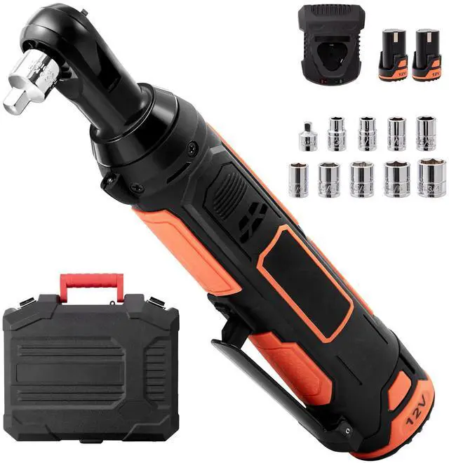 VEVOR 3/8" Cordless Electric Ratchet Wrench Set, 12V 33 Ft-lbs Power Ratchet Tool Kit, 45-Min Fast Charge, 2-Pack 2.0Ah Battery, Built-in LED Light, Variable Speed Trigger, 10 Sockets