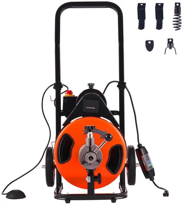 VEVOR Drain Cleaning Machine 50 FT x 1/2 Inch, Sewer Snake Machine Auto Feed, Drain Auger Cleaner with 4 Cutter & Air-Activated Foot Switch for 1" to 4" Pipes