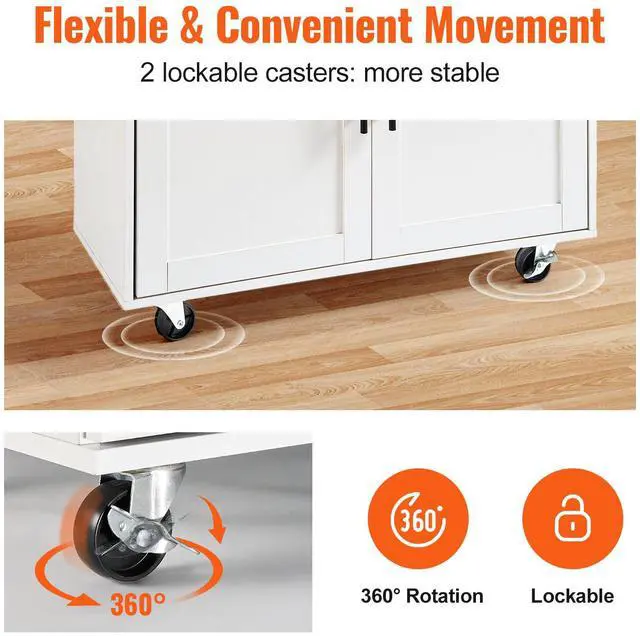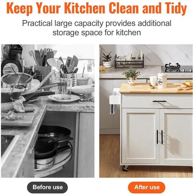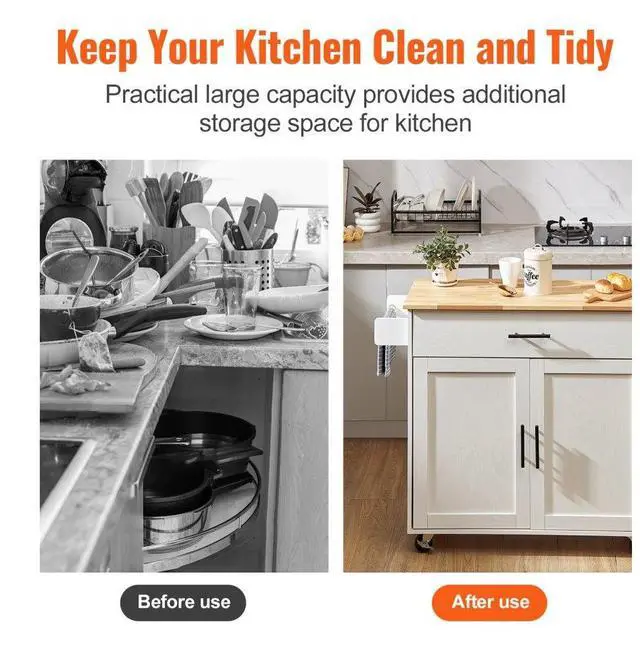 VEVOR Kitchen Island Cart with Solid Wood Top, 35.4" Width Mobile Carts with Storage Cabinet, Rolling Kitchen Table with Spice Rack, Towel Rack, Drop Leaf and Drawer, Portable Islands on Wheels, White