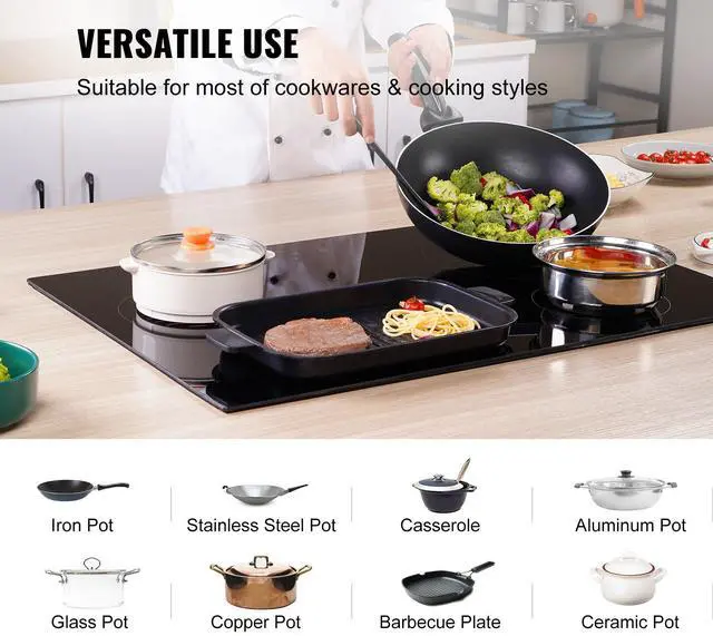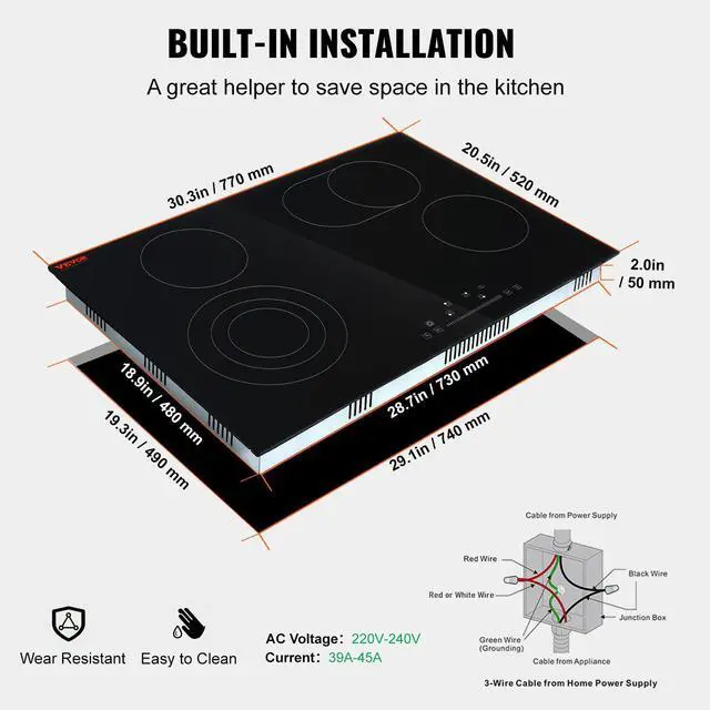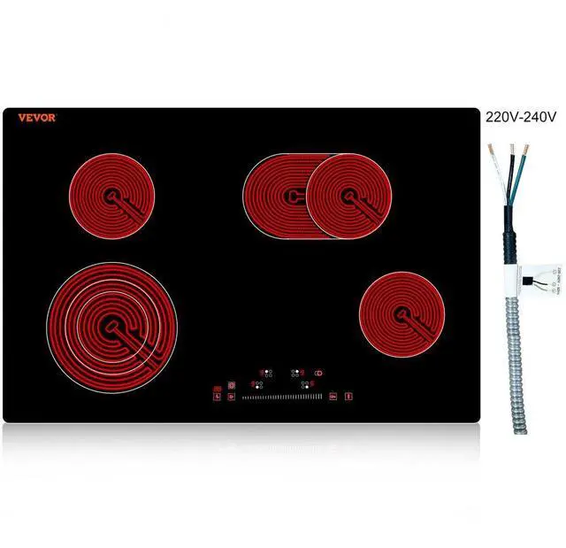 VEVOR Built in Electric Stove Top, 30.3 x 20.5 inch 4 Burners, 240V Glass Radiant Cooktop with Sensor Touch Control, Timer & Child Lock Included, 9 Power Levels for Simmer Steam Slow Cook Fry