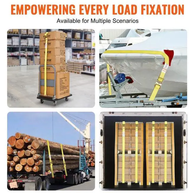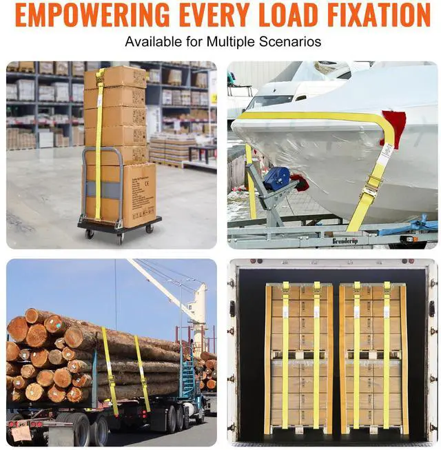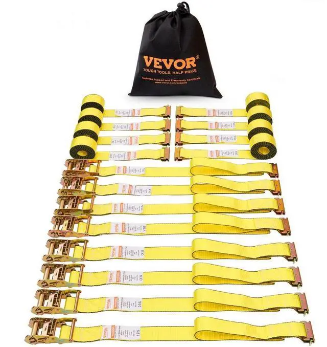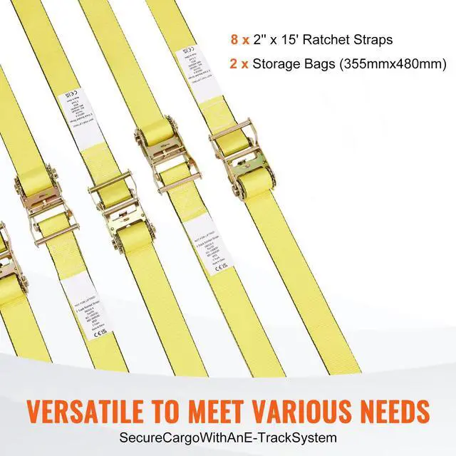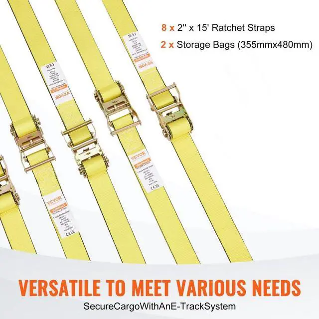 VEVOR Ratchet Tie Down Straps (8PK), 4400 lb Break Strength, E-Track Endless Ratchet with 8 Premium 2" x 15' Rachet Tie Downs Heavy Duty, for Moving Securing Cargo, Appliances, Lawn Equipment