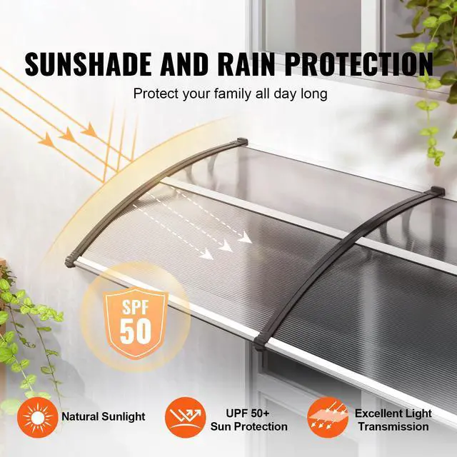 VEVOR Window Door Awning Canopy, 120" x 40" Door Canopy Exterior, UF50+ PC Sunshade Sheet Awnings, Outdoor Patio Awning Sun Shade, Transparent, Waterproof, for Sun Shutter, UV, Rain, Snow Protection