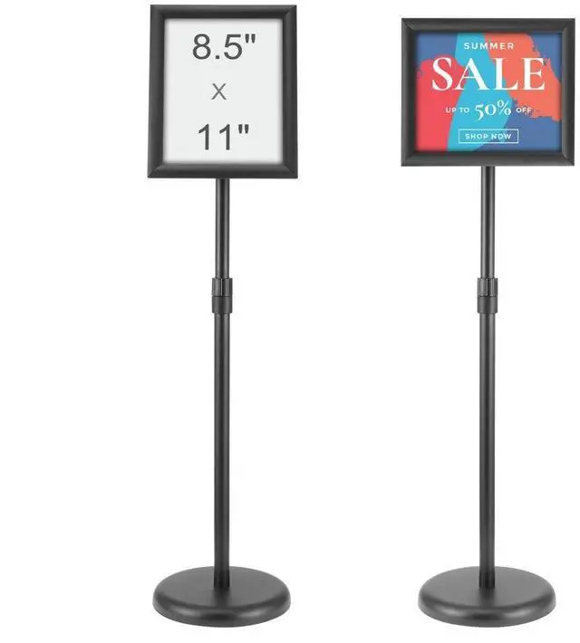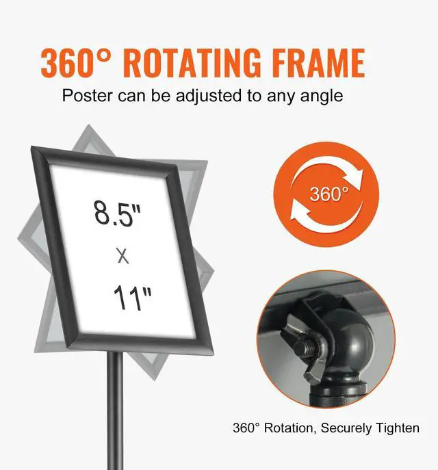 VEVOR Pedestal Sign Holder, 8.5 x 11 Inch Vertical and Horizontal Adjustable Poster Stand, Heavy-Duty Floor Standing Sign Holder with Round Base for Display, Advertisement, and Outdoor, Black