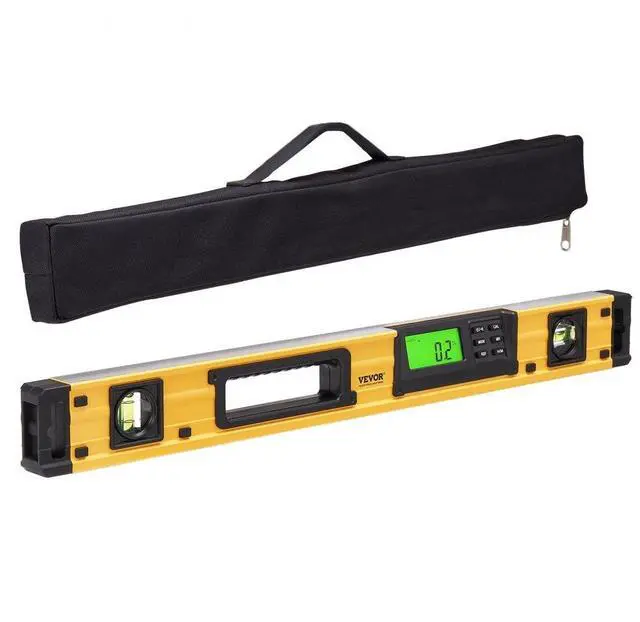 VEVOR Magnetic Torpedo Level, 600mm, LED Backlit Screen Mechanical Bubble Vials Ruler for 0-360 Degree, Gravity Sensor Aluminum Alloy Leveler Tool w/ Viewing Window, Shock-Resistant for Plumbing, Wood