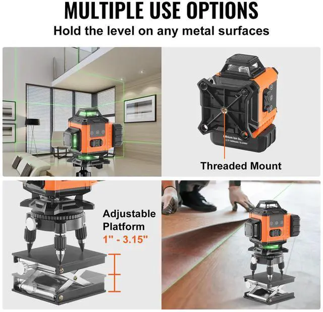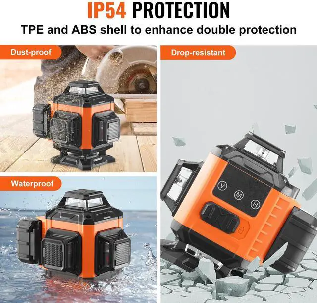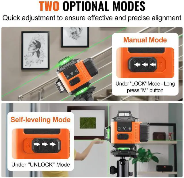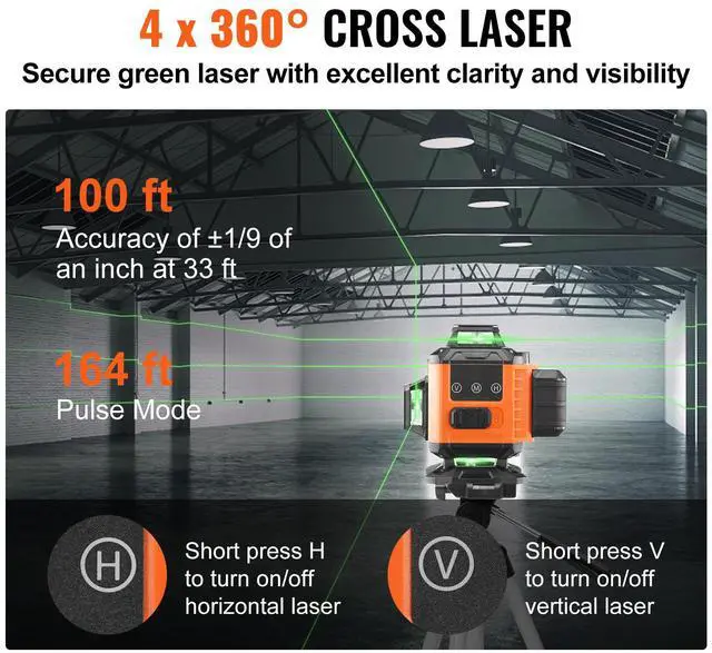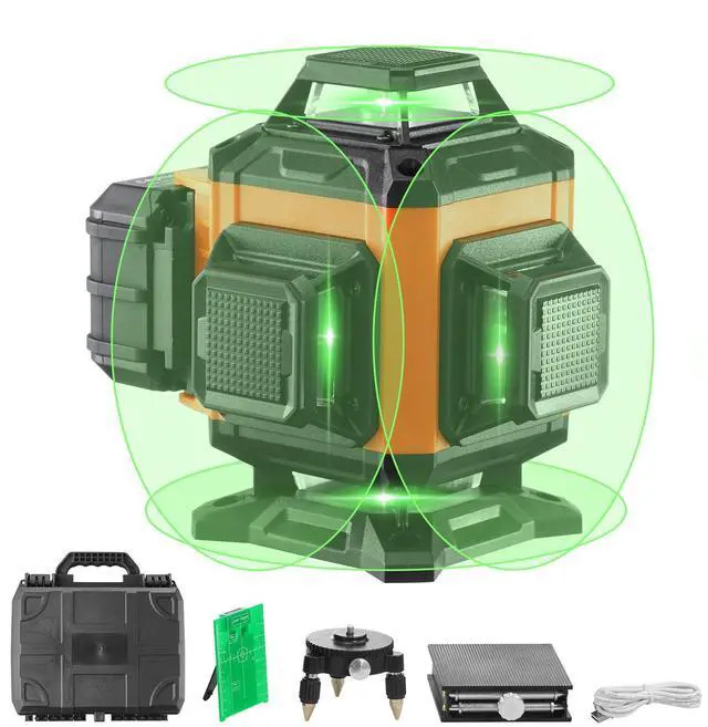 VEVOR Laser Level, 100ft, Self Leveling Manual Green 4 x 360° Cross 16 Line Laser, IP54 Waterproof Remote Control Manual Self-leveling Mode & 5h Continuous Working Time Line Laser, Battery Include