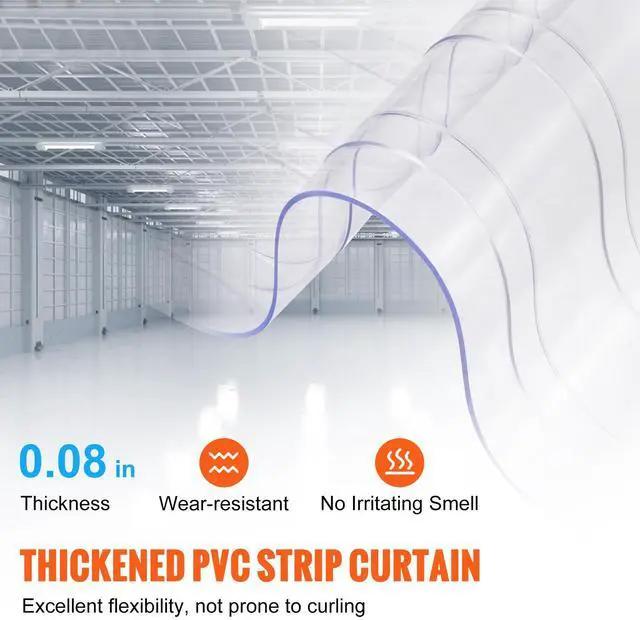 VEVOR Strip Curtain, 164' Length, 8" Width, 0.08" Thickness, Clear Ribbed Plastic Door Strips, PVC Curtain Strip Door Bulk Roll for Warehouses, Factories, Supermarkets, Shopping Malls, Halls, Garages