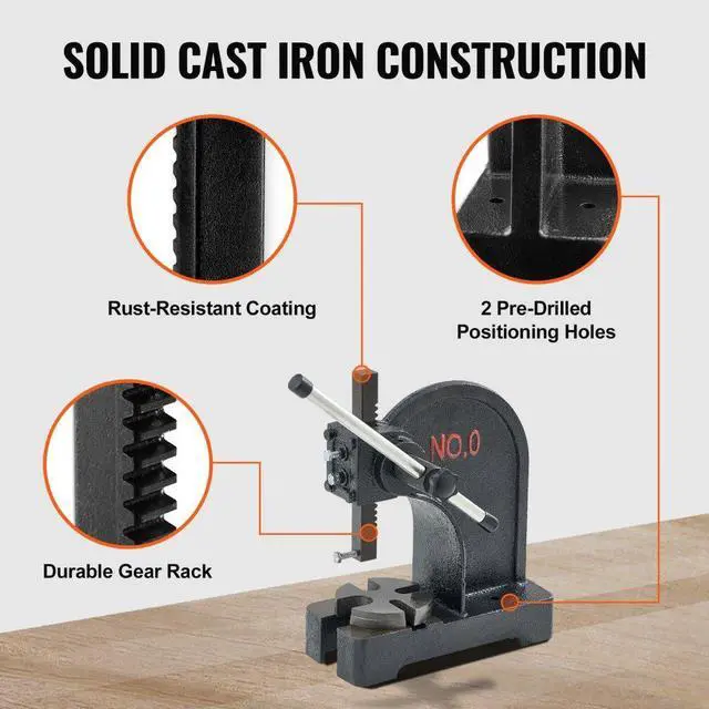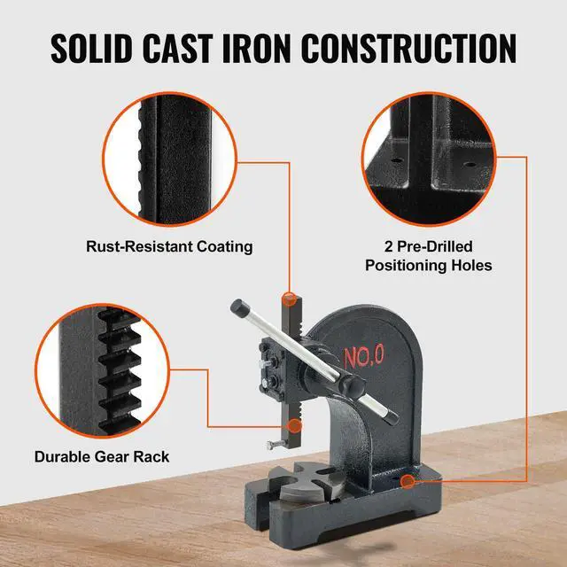 VEVOR Arbor Press, 0.5 Ton Manual Arbor Press, 4.6" Maximum Height, Cast Iron Heavy-duty Manual Desktop Arbor Press, Precision Hand Press for Stamping, Bending, Stretching, Forming