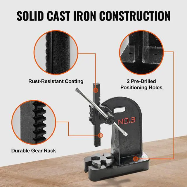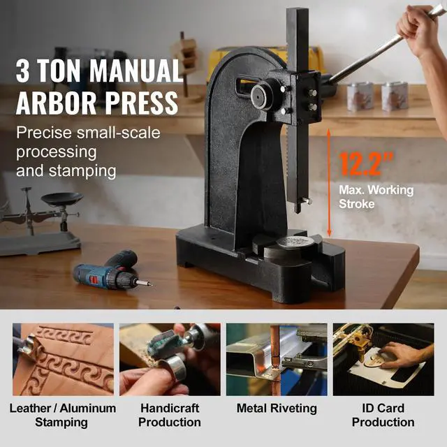 VEVOR Arbor Press, 3 Ton Manual Arbor Press, 12.2" Maximum Height, Cast Iron Heavy-duty Manual Desktop Arbor Press, Precision Hand Press for Stamping, Bending, Stretching, Forming