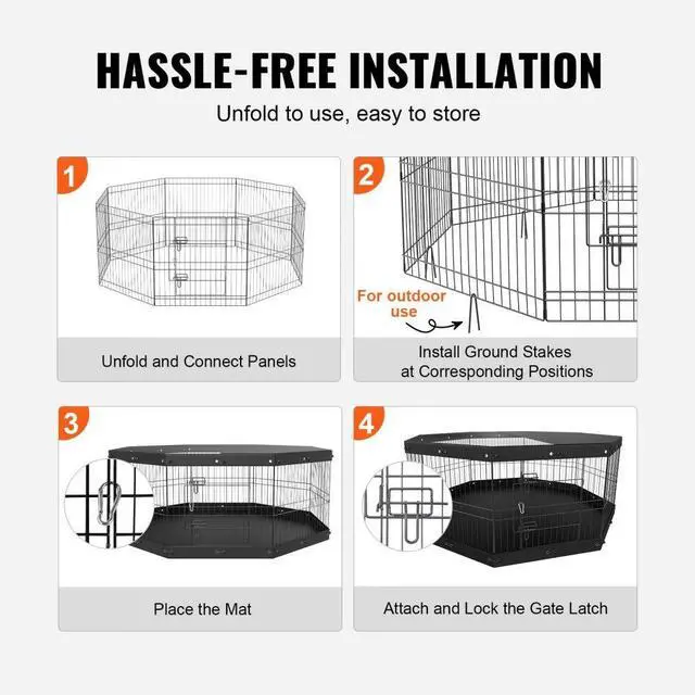 VEVOR Dog Playpen, 8 Panels Foldable Metal Dog Exercise Pen with Top Cover and Bottom Pad, 24" H Pet Fence Puppy Crate Kennel, Indoor Outdoor Dog Pen for Small Medium Pets, for Camping, Yard