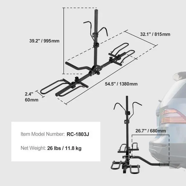• VEVOR 2-Bike Rack Hitch Mount Folding Carrier Car Truck SUV 1.25"/2" Receiver