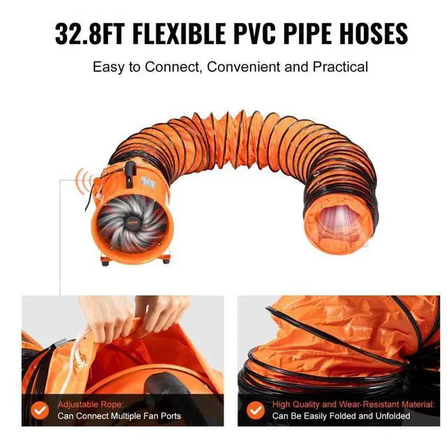 VEVOR Portable Ventilator, 10 inch Heavy Duty Cylinder Fan with 33ft Duct Hose, 380W Strong Shop Exhaust Blower 1893FM, Industrial Utility Blower for Sucking Dust, Smoke, Smoke Home/Workplace