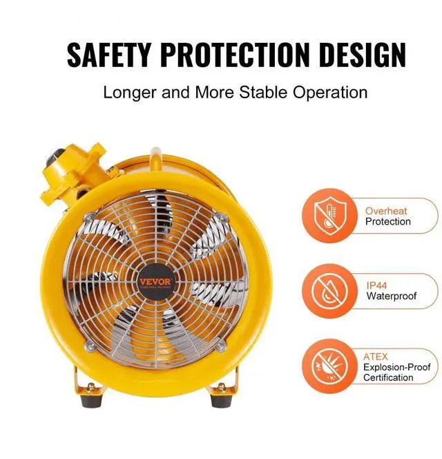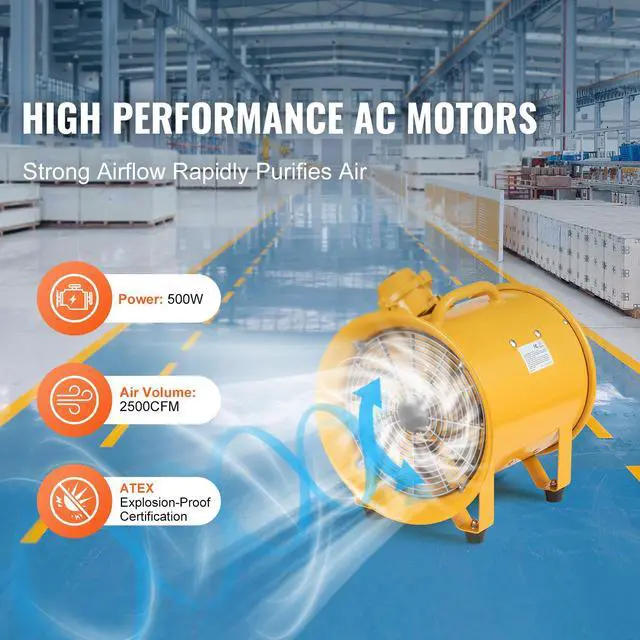 VEVOR Portable Ventilator, 12" Heavy Duty Cylinder Fan, 550W Strong Shop Exhaust Fan 2500CFM, 9.8ft Power Cord (No charging head), Industrial Utility Blower for Sucking Dust, Smoke Home/Workplace