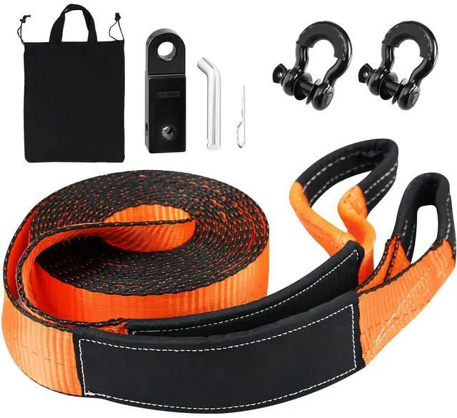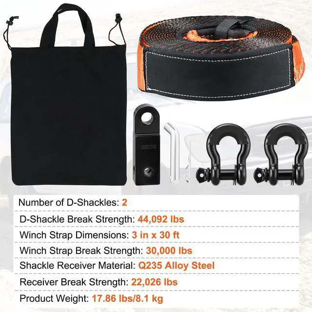 VEVOR Off-Road Recovery Kit, 3" x 30', Heavy Duty Winch Recovery Kit with 30,000 lbs Tow Strap, 44,092 lbs D-Ring Shackles, Shackle Receiver and Storage Bag, for ATVs, Jeeps, Off-Road Vehicles, Trucks