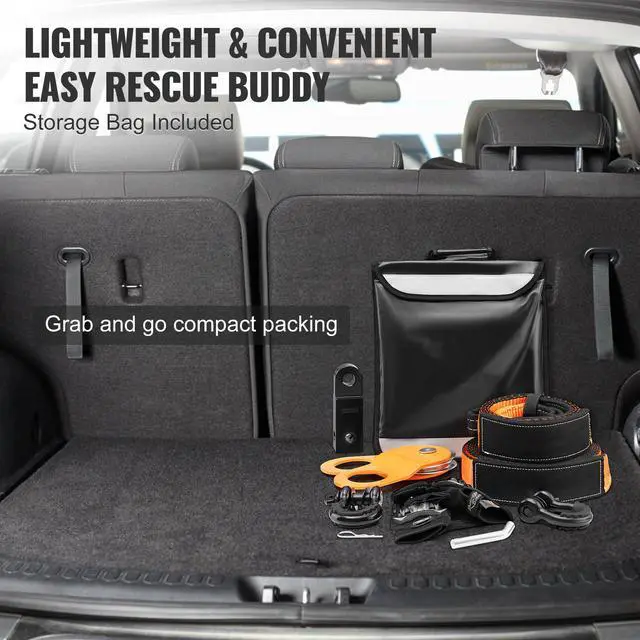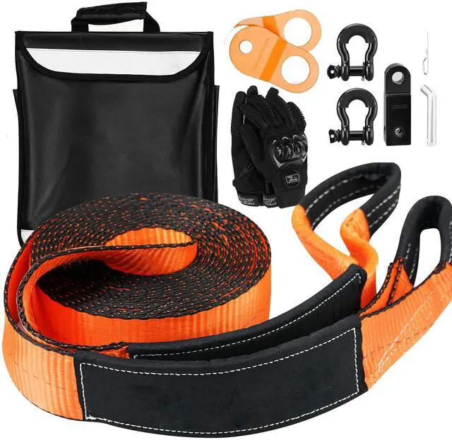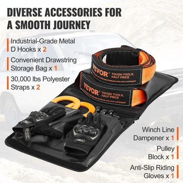 VEVOR Off-Road Recovery Kit, 3" x 30', Heavy Duty Winch Recovery Kit with 30000 lbs Tow Straps, 44092 lbs D-Ring Shackles, Shackle Receiver, Snatch Block Pulley, Gloves, Storage Bag for ATV Jeep Truck