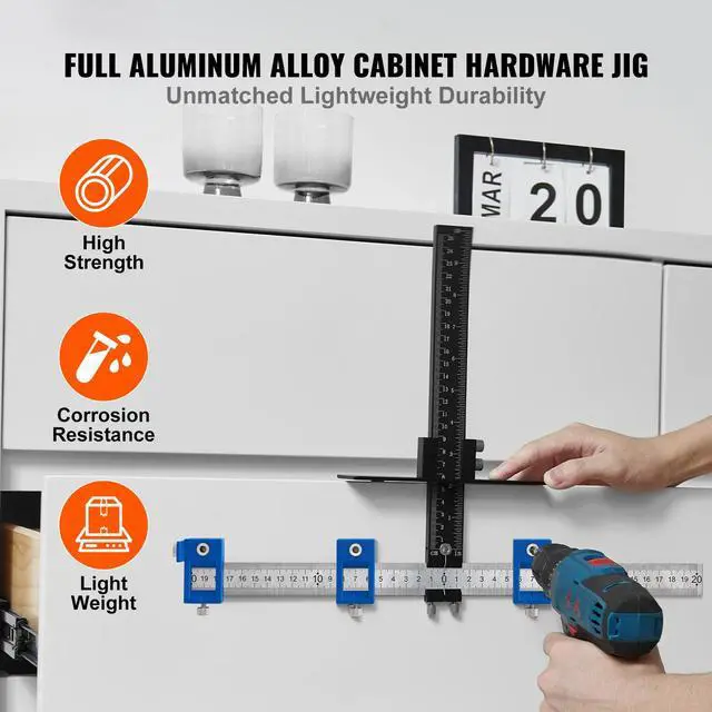 VEVOR Cabinet Hardware Jig, Aluminum Alloy and Stainless Steel Cabinet Handle Jig with Center Punch, Adjustable Cabinet Hardware Template for Installation of Door Drawer Front Knobs Handles and Pulls