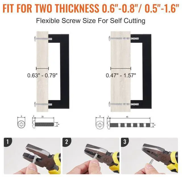 Primary Material: Stainless Steel,Item Dimensions (L x W x H): 3.46 x 0.47 x 1.38 inches / 88 x 12 x 35 mm,Net Weight (including all accessories): 1.08 lbs / 0.49 kg,Center Hole Spacing: 3 inches / 76 mm,Gross Weight (including accessories and packaging): 1.3 lbs / 0.58 kg,Item Model Number: 6003-76mm-black,Quantity: 10 pieces