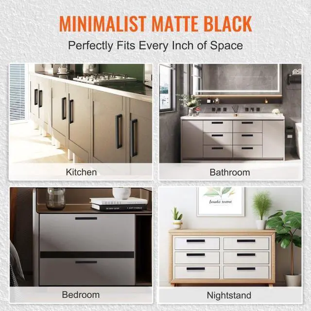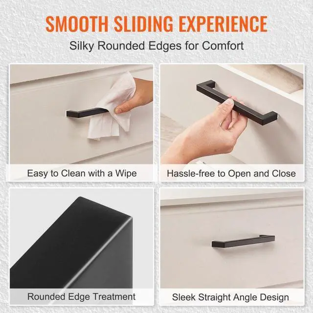 VEVOR 10 Pack Cabinet Pulls, 3in / 76mm Center to Center Slim Square Kitchen Cabinet Drawer, Stainless Steel Modern Kitchen Cupboard Door Handles for Kitchen Bathroom Bar Hardware Matte Black
