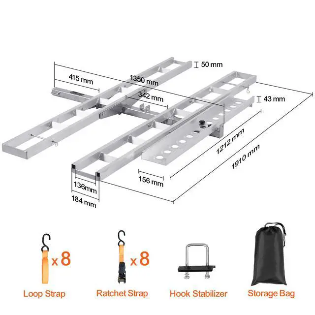 Ramp Length: 3.9 ft / 1.18 m,Capacity: 2 pcs,Rated Load Capacity: 600 lbs / 272 kg,Color: Silver,Item Model Number: TD-1004-08,Maximum Load Capacity: 720lbs / 326kg,Material: 6063-T5 Aluminum,Maximum Tire Width: 5.5 inch / 13.97 cm,Net Weight: 66.1 lbs,Product Size: 75 x 53 x 4 inch / 1910 x 1350 x 110 mm