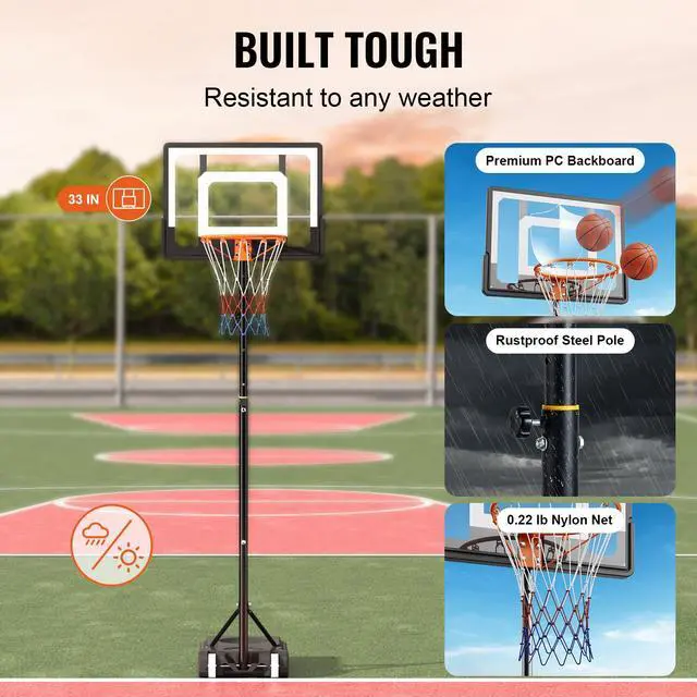 VEVOR Basketball Hoop, 5-7 ft Adjustable Height Portable Backboard System, 32 inch Basketball Hoop & Goal, Kids & Adults Basketball Set with Wheels, Stand, and Fillable Base, for Outdoor/Indoor