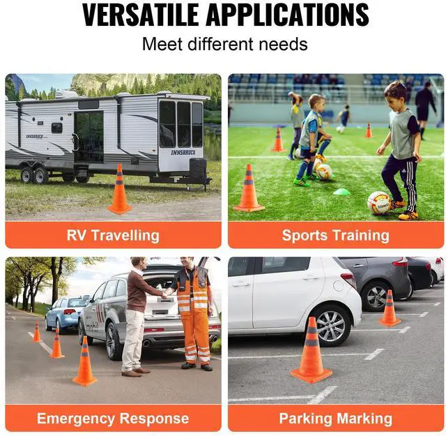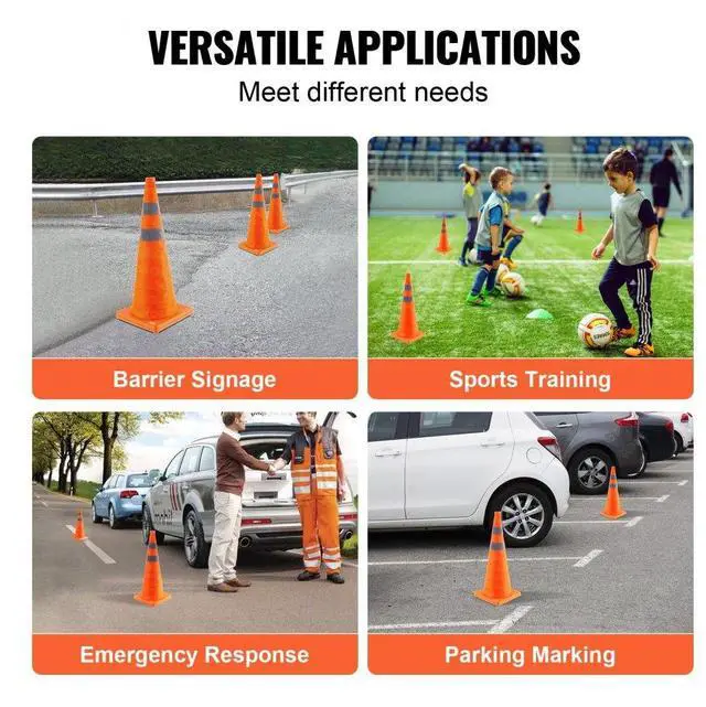 VEVOR Safety Cones, 4 Pack 28 inch Collapsible Traffic Cones, Construction Cones with Reflective Collars, Wide Base and A Storage Bag, for Traffic Control, Driving Training, Parking Lots