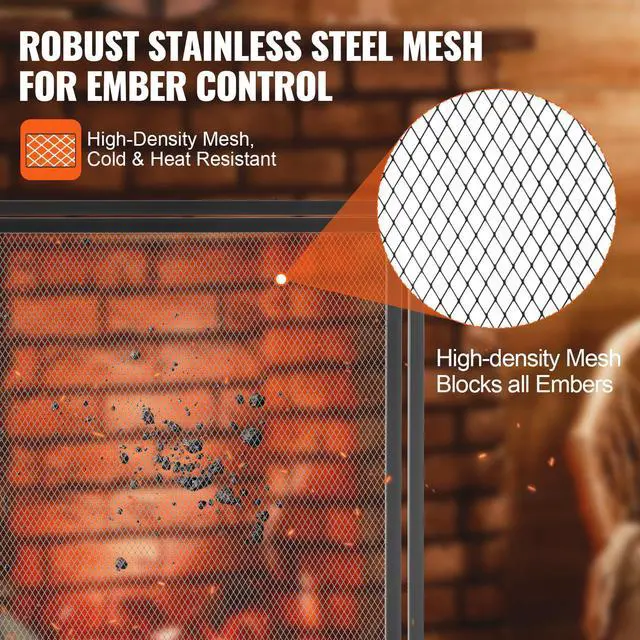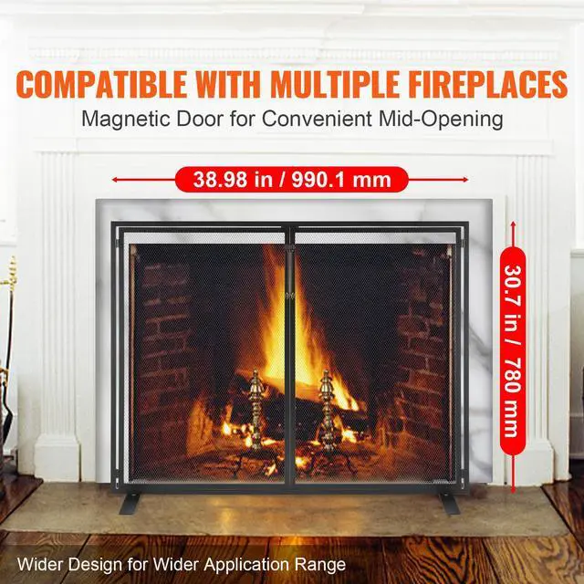 VEVOR Fireplace Screen 1 Panel with Door, Sturdy Iron Mesh Fireplace Screen, 38.98"(L) x30.7"(H) Spark Guard Cover, Simple Installation, Free Standing Fire Fence Grate for Living Room Home Decor Moder