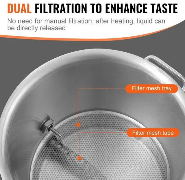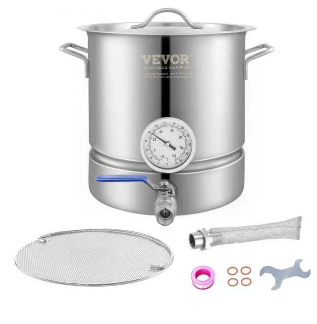 VEVOR Stainless Steel Kettle, 5 GALLON Brewing Pot, Tri Ply Bottom for Beer, Brew Kettle Pot, Home Brewing Supplies Includes Lid, Handle, Thermometer, Ball Valve Spigot, Filter, Filter Tray