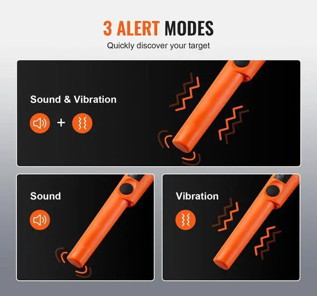 VEVOR Metal Detector Pinpointer, Partial Waterproof Handheld Pin Pointer Wand, 1.96" Detection Depth, 3 Modes, Treasure Hunting Probe with Holster, Waterproof Bag and 9V Battery, for Adults and Kids
