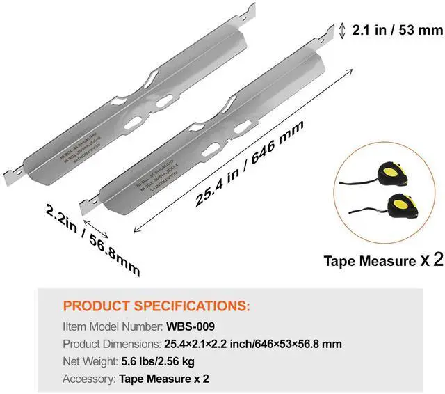 Item Model Number: WBS-009,Material: SUS201,Product Dimensions: 25.4×2.1×2.2 inch/646×53×56.8 mm,Net Weight: 5.6 lbs/2.56 kg