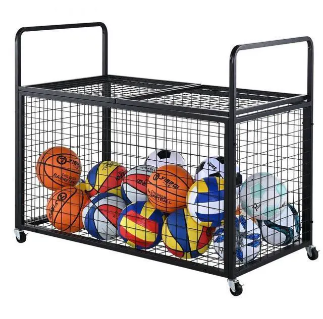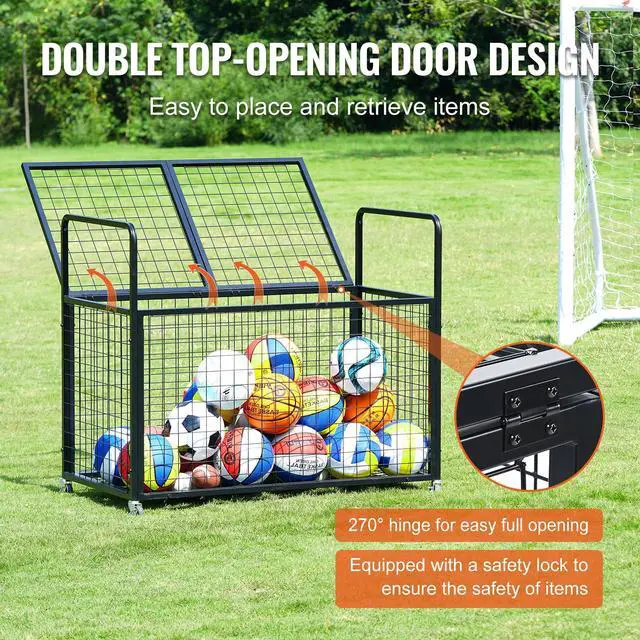 VEVOR Rolling Sports Ball Storage Cart, Lockable Basketball Cage with Double Lids, Sport Equipment Holder Organizer for Indoor Outdoor, Steel Storage Rack for Garages, Playgroup, Gym and Schools