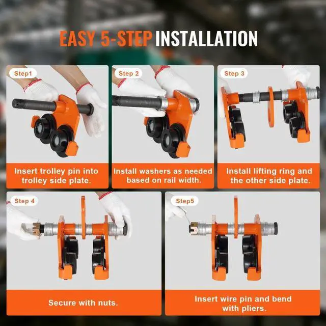 VEVOR Manual Trolley, 2200 lbs/1 Ton Load Capacity, Push Beam Trolley with Dual Wheels, Adjustable for I-Beam Flange Width 2.5" to 8", Heavy Duty Alloy Steel Garage Hoist for Straight Curved I Beam