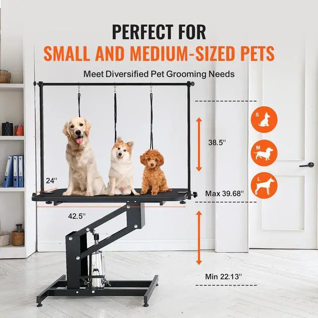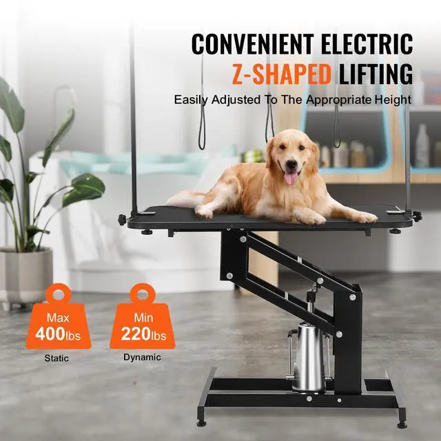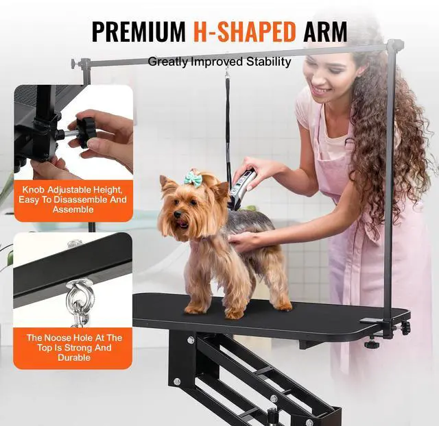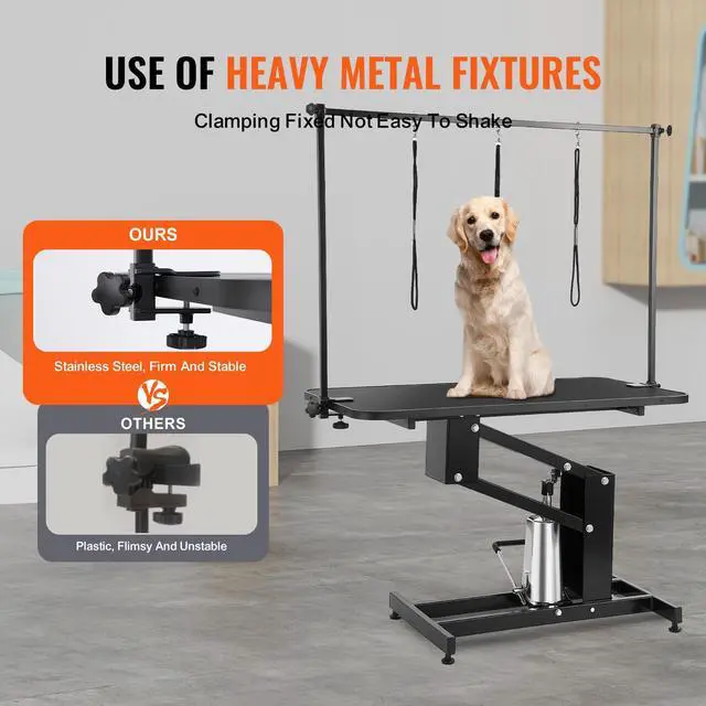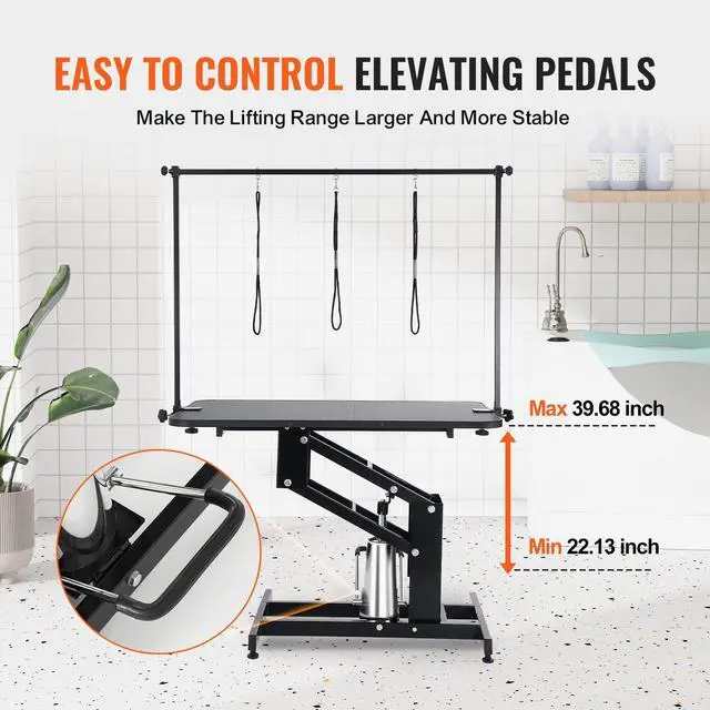 VEVOR 43" Hydraulic Pet Grooming Table, Heavy Duty Dog Grooming Arm for Medium/ Small Dogs, Height Adjustable Dog Grooming Station, Anti Slip Tabletop /Dog Grooming Station, Max Bearing 400LBS