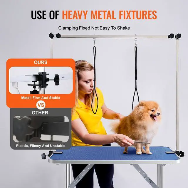 VEVOR Pet Grooming Table Two Arms with Clamp, 36''x24'' Dog Grooming Station, Foldable Pets Grooming Stand for Medium and Small Dogs, Free No Sit Haunch Holder with Grooming Loop, Bearing 330lbs