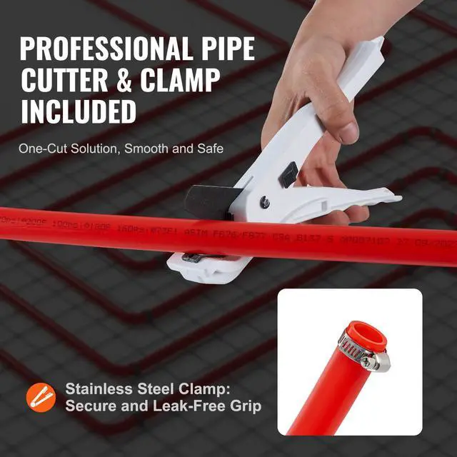 VEVOR PEX Pipe 3/4 Inch, 100 Feet Length PEX-B Flexible Pipe Tubing for Potable Water, Pex Water Lines for Hot/Cold Water & Easily Restore, Plumbing Applications with Free Cutter & Clamps ,Red