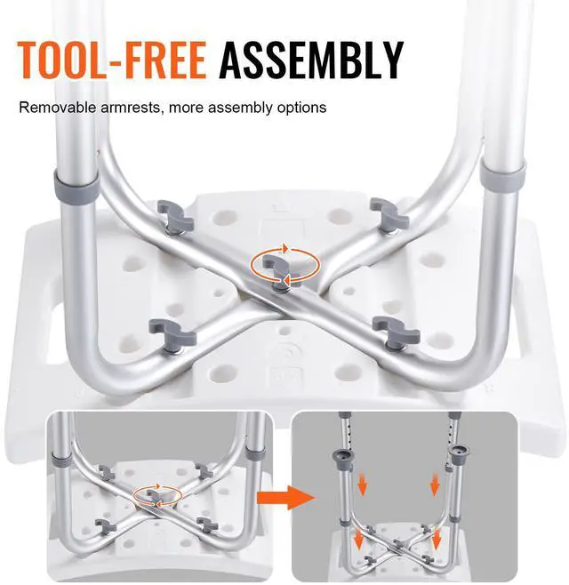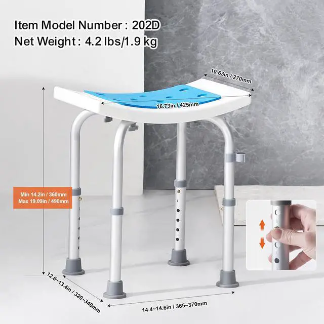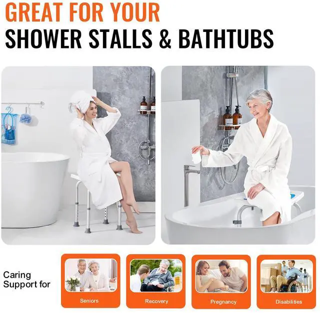 VEVOR Shower Chair, Adjustable Height Shower Stool, Shower Seat for Inside Shower or Tub, Non-Slip Bench Bathtub Stool Seat for Elderly Disabled Handicap, 350 LBS Capacity