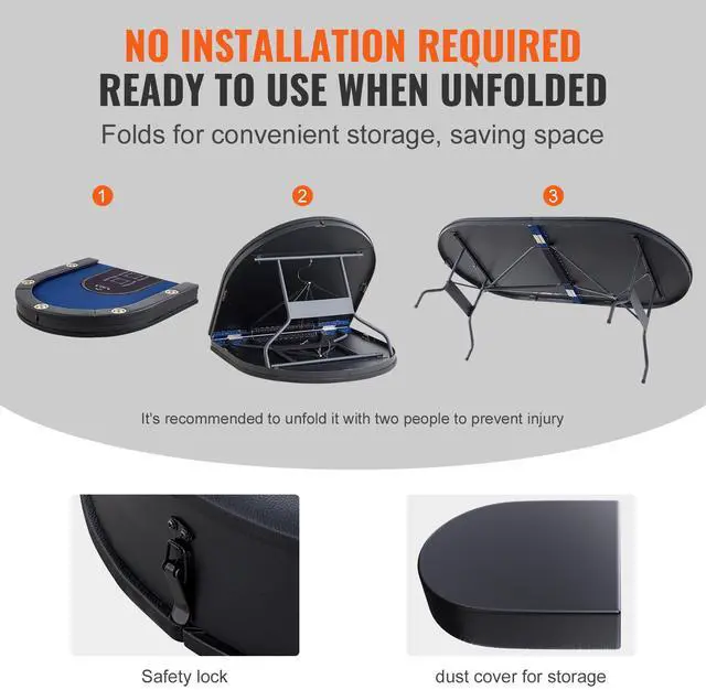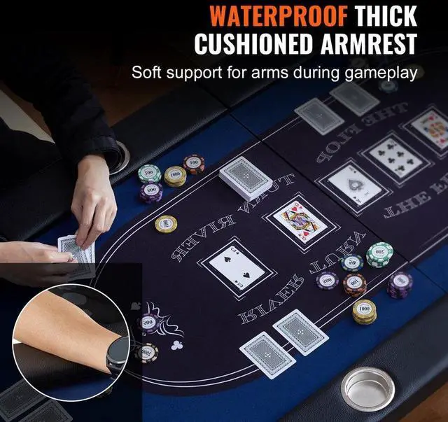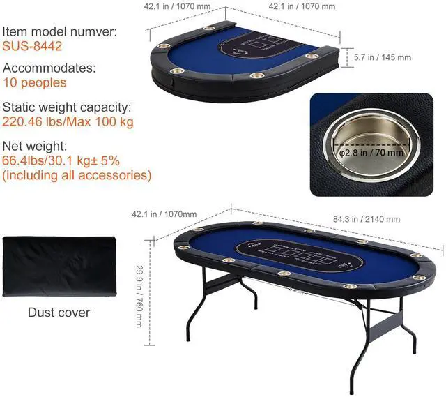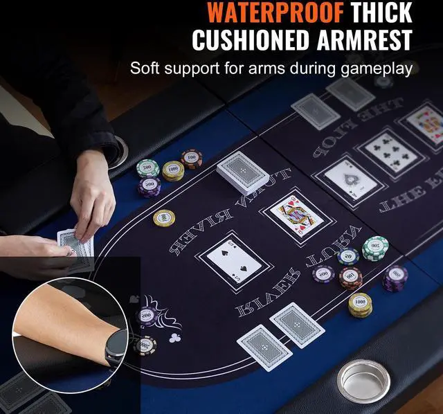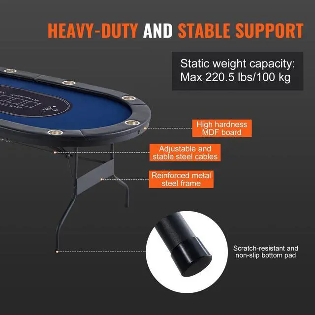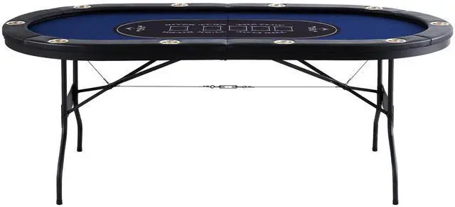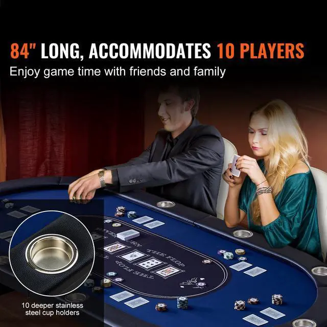 VEVOR 10 Player Foldable Poker Table, Blackjack Texas Holdem Poker Table with Padded Rails and Stainless Steel Cup Holders, Portable Folding Card Board Game Table, 84" Oval Casino Leisure Table