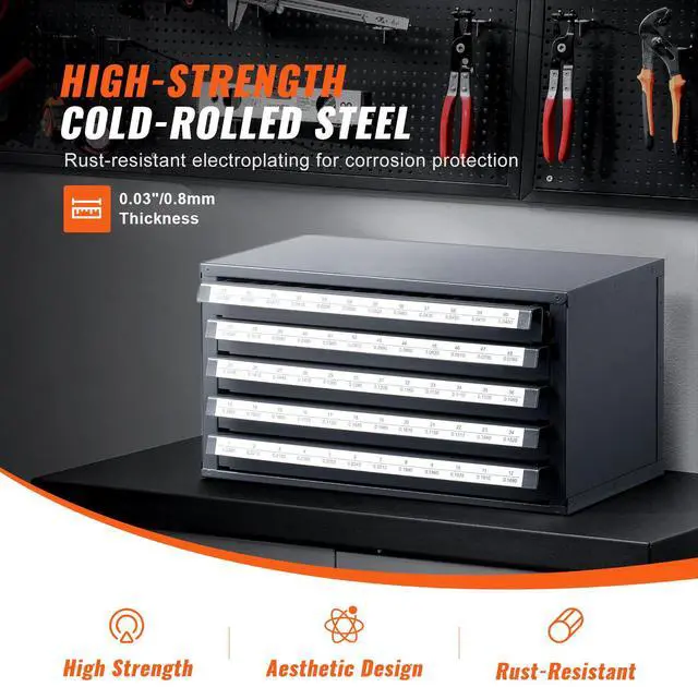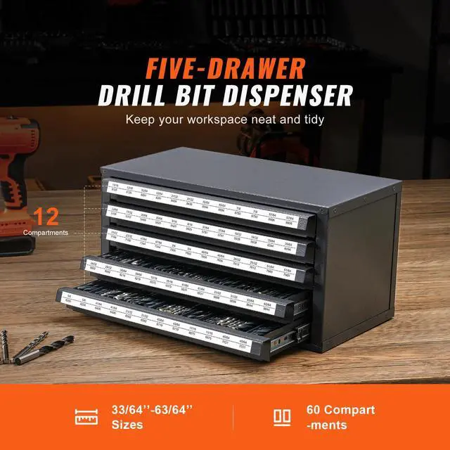 • VEVOR Drill Bit Dispenser Cabinet, Five-Drawer Drill Bit Organizer Cabinet for 33/64" to 63/64" Steel Drill Dispenser Organizer Cabinet with Labels, Stackable Drill Dispenser for Drill Bit Storage
