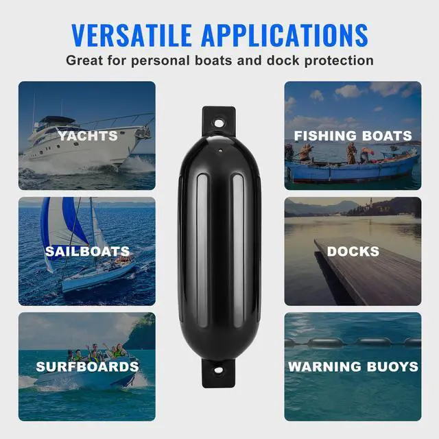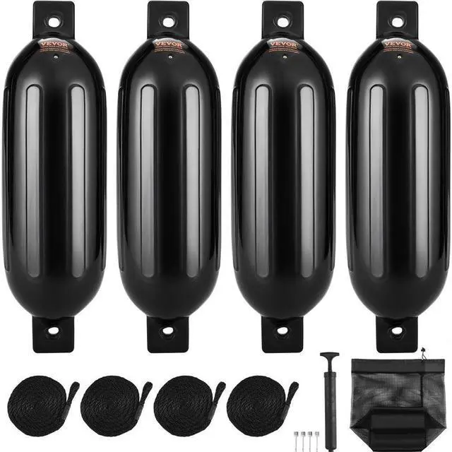 VEVOR Boat Fenders, 6.5" x 23" Boat Bumpers for Docking, Inflatable Ribbed Fender with Center Holes, Marine Boat Dock Fender Bumper with Air Pump, 4 Needles and 4 Ropes and Storage Bag, Black