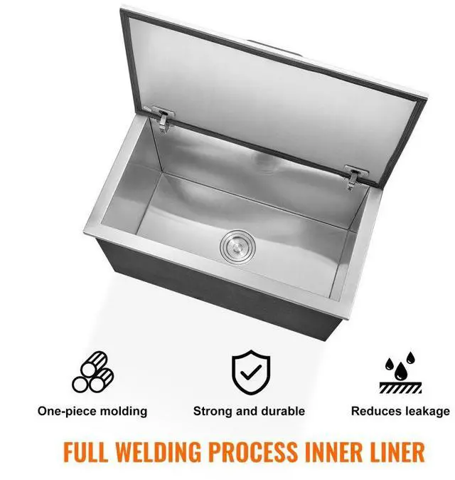 VEVOR Drop in Ice Chest, 24"L x 20"W x 15"H Stainless Steel Ice Cooler, Commercial Ice Bin with Hinged Cover, 40 qt Outdoor Kitchen Ice Bar, Drain-pipe and Drain Plug Included, for Cold Wine Beer