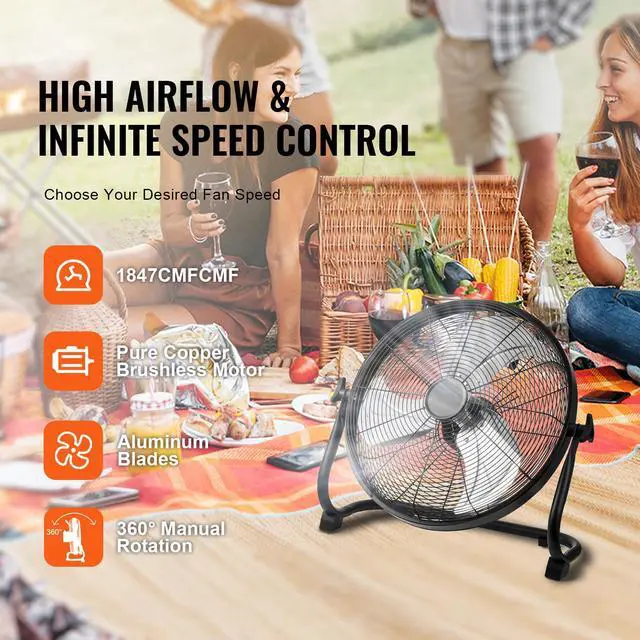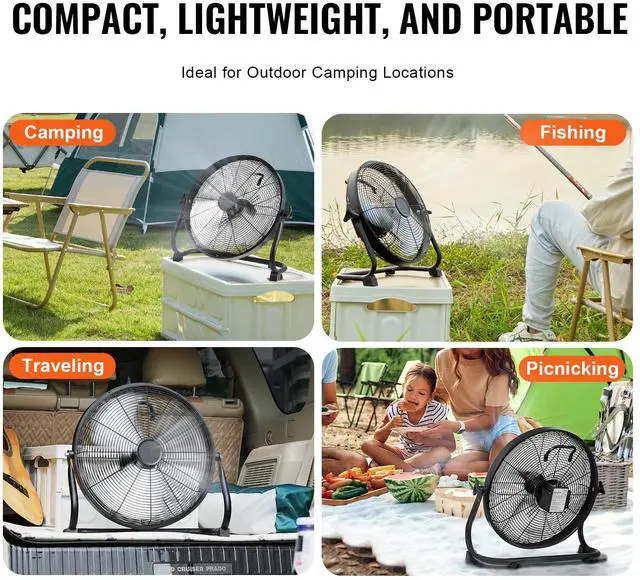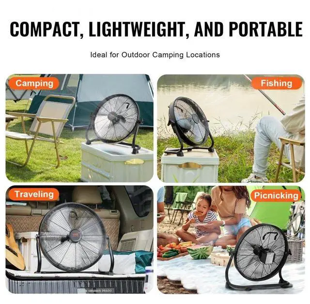 VEVOR Cordless Fan 16 in, Portable Quiet Personal Fan for Home or Office, 360 Degree Manual Pivoting Head, Stepless Speed Regulation High Velocity Cordless Fan, Heavy Duty Metal Industrial Floor Fans