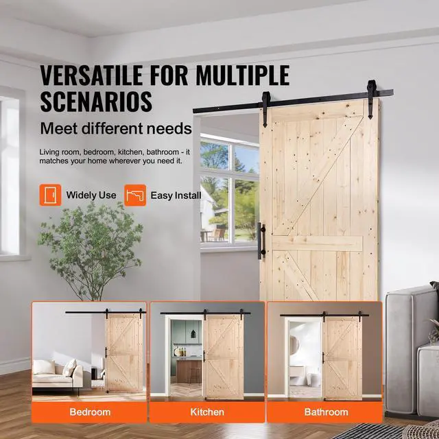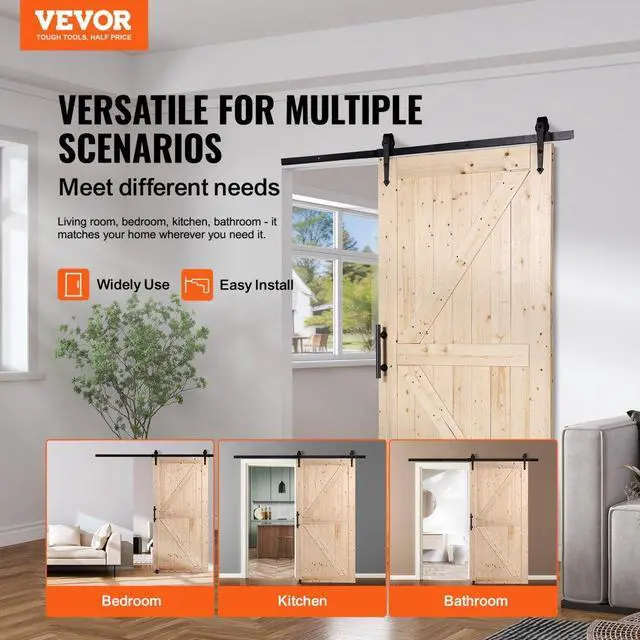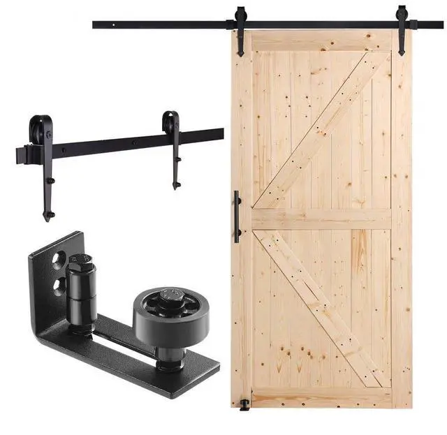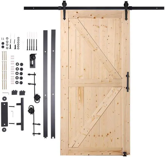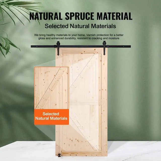 VEVOR Barn Door and Hardware Kit, 42" x 84" Wood Sliding Barn Door, Smoothly and Quietly, Barn Door Kit with 8-in-1 Floor Guide and Door Handle, Spruce Wood Panelled Slab, Easy to Install