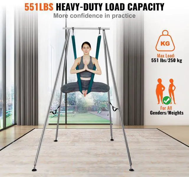 VEVOR Aerial Yoga Frame & Yoga Hammock, 9.67 ft Height Professional Yoga Swing Stand Comes with 6.6 Yards Aerial Hammock, Max 551.15 lbs Load Capacity Yoga Rig for Indoor Outdoor Aerial Yoga, Green