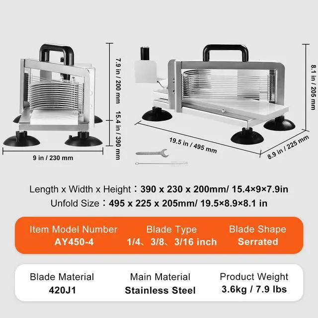 Blade Material: 420J1,Blade Type: 1/4, 3/8, 3/16 inch,Blade Shape: Serrated,Item Model Number: AY450-4,Product Weight: 3.6kg / 7.9lbs,Main Material: Stainless Steel