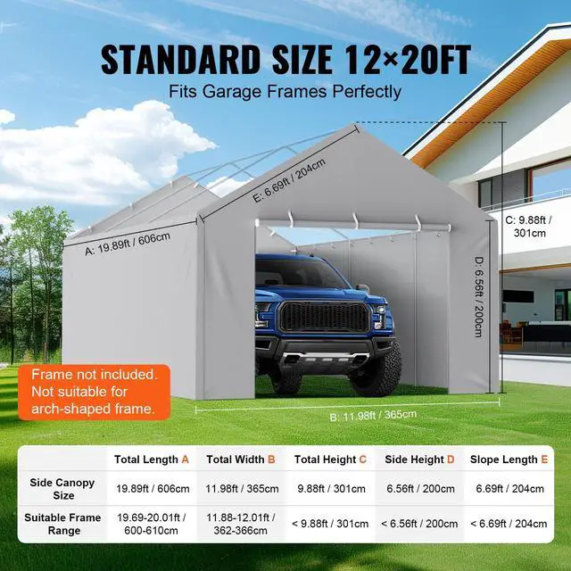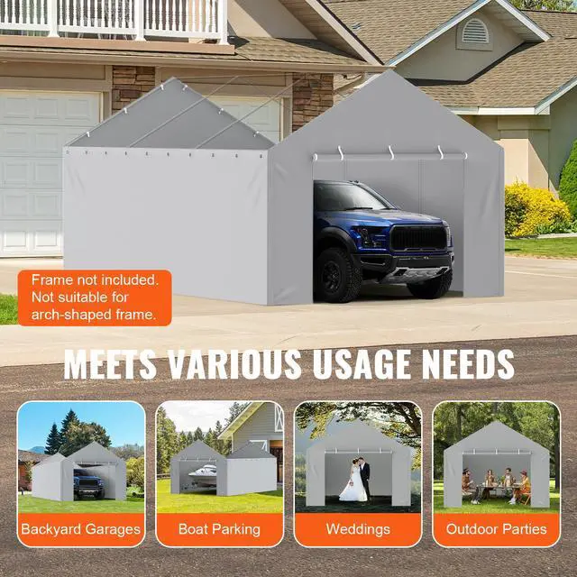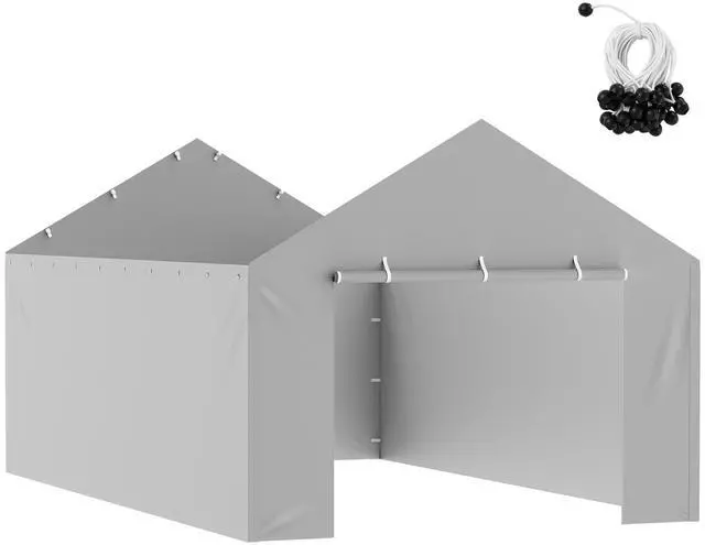 VEVOR Carport Replacement Canopy Cover Side Wall 12 x 20 ft, Garage Tent Shelter Tarp Heavy-Duty Waterproof & UV Protected, Easy Installation with Ball Bungees,Grey (Top and Frame Not Included)