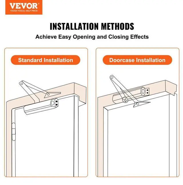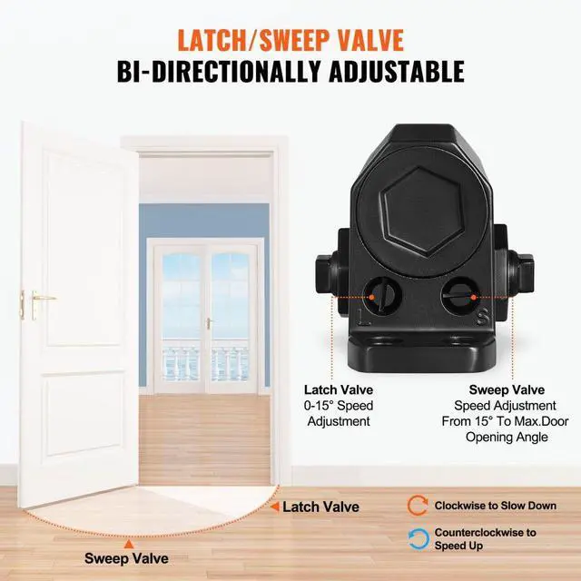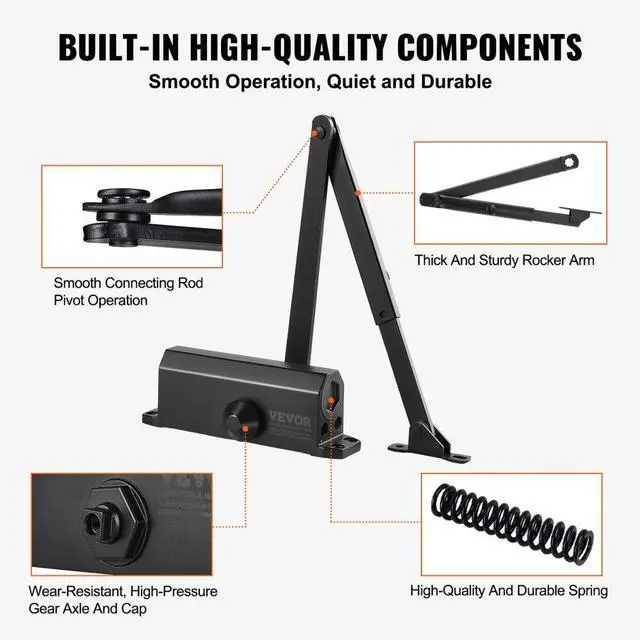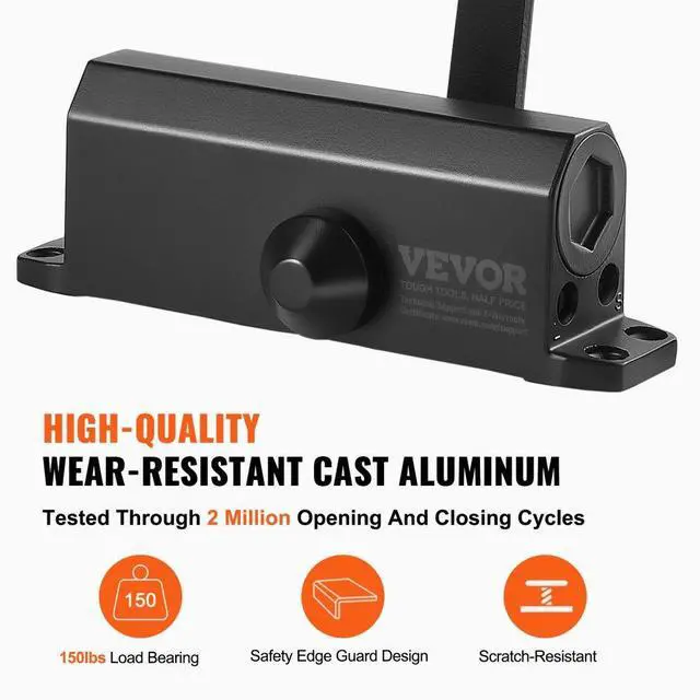 VEVOR Door Closer, Automatic Door Closer Commercial or Residential Use for Door Weights 150 Lbs, Adjustable Size Hydraulic Buffer Door Closers Heavy Duty Cast Aluminum Body, Easy Install, Black