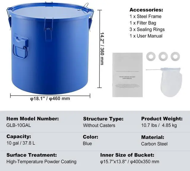 Structure Type: Without Casters,Capacity: 10 gal/37.8L,Color: Blue,Item Model Number: GLB-10GAL,Surface Treatment: High-Temperature Powder Coating,Product Weight: 10.7 lbs/4.85 kg,Inner Size of Bucket: 15.7" x 13.8"/400 x 350 mm,Material: Carbon Steel,Product Size: 18.1" x 14.2"/460 x 360 mm