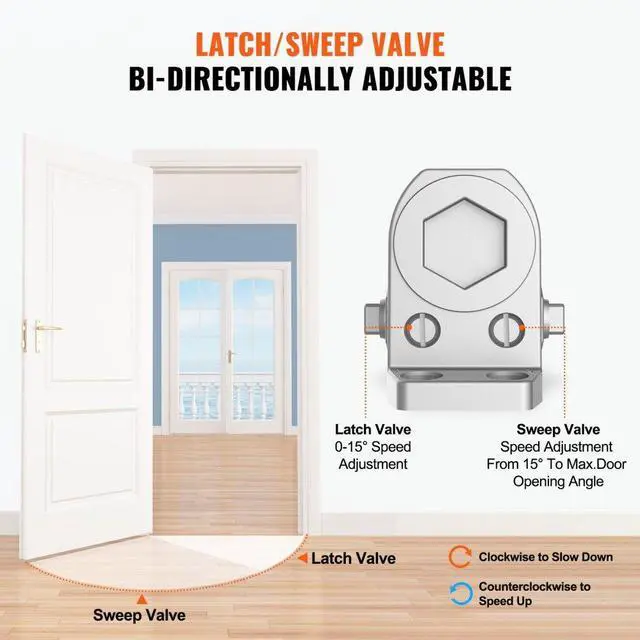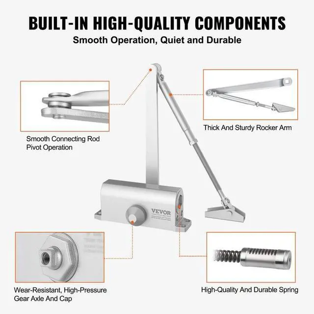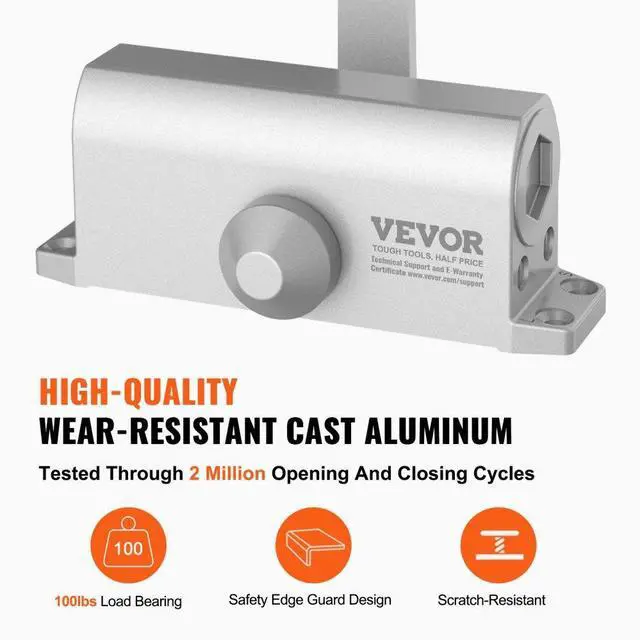 VEVOR Door Closer, Automatic Door Closer Commercial or Residential Use for Door Weights 100 Lbs, Adjustable Size Hydraulic Buffer Door Closers Heavy Duty Cast Aluminum Body, Easy Install, Silver