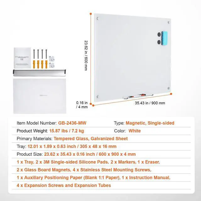 1 x Magnetic Glass Whiteboard